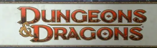 The font of 4e's logo roughly resembles the 3e/3.5e logo (see below) but without the horizontal sword image in between the two words. It also has a stylized dragon ampersand, again similar to 3e/3.5e/5e, but it does look distinctly different from the other editions (the "dragon's wing" is more prominent than in the other editions' ampersands).