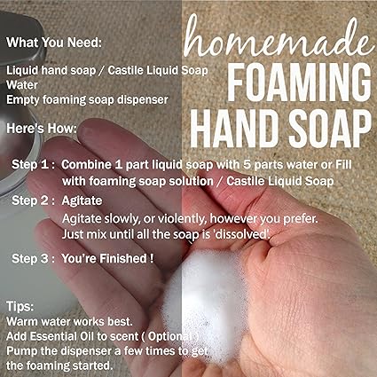 Combine 1 part liquid soap with 5 parts water or Fill with foaming soap solution / Castle Liquid Soap.