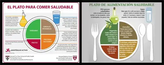 I don’t have a set phrase in English for this last set of images I’ll show you (basically they are newer versions of the triangular-shaped guide known as the "food pyramid"), but clearly, you will find all sorts of places where “verduras” is used instead of “vegetales” and vice versa.