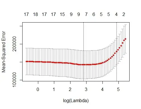 I'm using Lasso to get the best variables to predict an outcome. I understand that this graph gives me λmin and λ1se