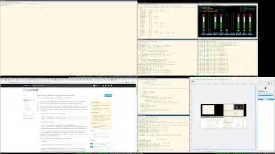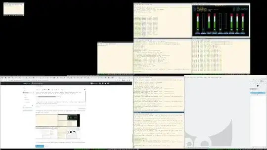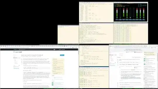 4 real monitors are used to show this X11 screen. They are positioned 2×2. The figures suggest where those real monitors are exactly, as the window manager (i3 in this case) puts a desktop/workspace on each of them. This also explains the black border in the top right. That particular monitor has a resolution slightly below the others. The window manager put a workspace on that monitor, which has its position snug to the other monitors, leaving an “off-screen” area on the X11 screen where i3 does not paint anything. Non-tiling window managers often allow you to move windows half outside of the monitor(s), so that area might actually contain something (and have that visible on a screenshot).