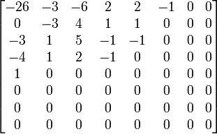 This will result in a matrix that now has considerably less numbers in it, and lots of zeroes:
