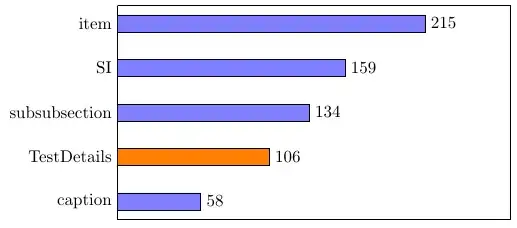 I am beginner in LaTeX, trying to use it for industrial documents. I wonder if there is a way to change the color of only one bar of the plot below, ie "TestDetails", to illustrate it is a local macro and not a LaTeX keyword. I have been trying to experiment with point meta, but could not find a way.