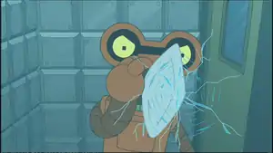 Disguising themselves as owl exterminators, Walt, Larry, and Igner bumble their way through locating the anti-crystal while the kids are using it. Farnsworth, who is not convinced by their moronic display, unleashes an owl after them, exposing their identities and allowing him to find the anti-crystal.