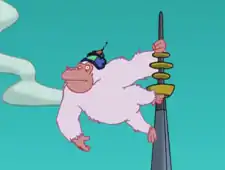 The Albino Shouting Gorillas are gorillas created by Professor Farnsworth that are used to shout his love to Mom on rooftops. They are activated by a remote control and can only say 'Love Mom'.