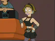 In 3011, she travels on the Planet Express airline, and crash lands along with the rest of the passengers on the rock planet homeworld. Her gender was changed to nothing, then to male, and finally back to female. She also served on the jury of the case of Mom v. Farnsworth.