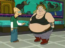 After disguising herself to be thin, she met Professor Farnsworth, who too was disguised, but as a young person thanks to the full pound of stem cells from GeneWorks, S.K.G.. The two met and spent the evening together, until the Professor tried to run as his stem cells wore off. She caught him, his true identity revealed, and so she revealed her true weight. They agreed it was better to know the truth, and proceeded to passionately make out.