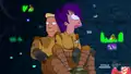 An adverstisement was seen inside the V-GINY, along with censorable programmes such as All My Circuits, Channel √2 News, and Everybody Loves Hypnotoad. [6ACV02] Bachelor Chow has at least two slogans, both shown in the opening sequence.