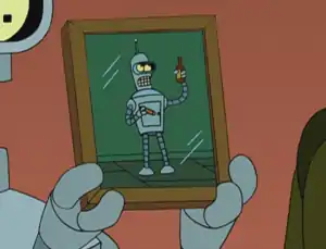 After becoming an official stalker for Calculon by Calculon, Bender fell into a deep depression after Calculon informed him that there was no such thing as the League of Robots, a society of robots which came to the aid of robots abused by humans, and which Bender had worshipped for his entire life. He contemplated commiting suicide until he was approached by the League led by Calculon himself; he lied about its non-existence to ensure its secrecy.