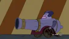 After launching Nonchalanto onto the United Nations General Assembly roof, Big Bertha was badly injured. Although she does not want to be put in a new body, however, it is possible she was restored by Fishy Joe, the owner of the circus she works in. It's also possible that her injuries resulted in death.