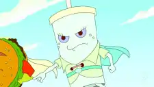 Male voice: Look! Up on the drive-through menu! It's Captain Mega Meat and his young ward Bottomless Boy!
