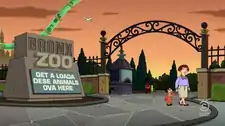 The Bronx Zoo is a zoo in the Bronx, New New York. In 3013, Fry and Leela went there before they got married, at St. Koch's Cathedral. [7ACV26]