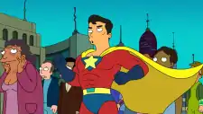 Cowardman is a superhero who wears a red, yellow, and blue costume, and has the ability to fly. He was on the streets of New New York when Yivo first appeared to the Earthican people.[TBwaBB] As Mayor Poopenmeyer, Hermes, and Hattie tried to guess shkler identity, Cowardman flew away. In 3012, whilst New New York was in chaos following the deadly effects of a sunspot cycle on Earth predicted to cause the end of the world, he flew away again.[7ACV02]