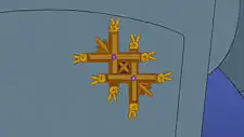 The Dirty Double-Cross is Earth's highest award for swindling. It was given to Bender by Richard Nixon after he defeated the Scammer Aliens in the Battle for Earth, in 3007. [BBS] Bender promised to treasure it and immediately hock it.