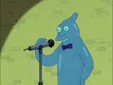 Florp is a Trisolian stand-up comedian and host of "amateur nite" at the Comedy Simulator. For some reason he left Trisol and currently is on Earth, having attended the 1074th Academy Awards in Los Angeles in 3001. [3ACV08]