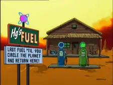 Hg's Fuel station is the only fuel station on the planet Mercury. Not much more is known about it. Fry and Amy once drove around on the planet and ran out of fuel on the other side of the planet.