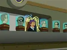 The Earth Supreme Court, the highest court on Earth, uses a high-speed telepathy device to confer with each other during voting on cases. The device consists of a headpiece that is worn by the Chief Justice and is connected via cable to the back of the supports for the head jars of all the other Justices. During the communication, energy is seen passing down the cables and the Justices' heads spin in their jars.