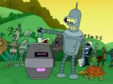 Bender: [To his turtle]] Poor guy. Maybe you'd feel better if I had a drink. [He pumps the keg.] Crummy keg! It's completely ta-- Oh, you're a robot!