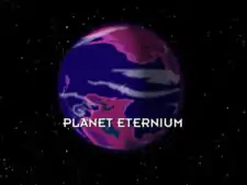 Description: Eternium is a planet at the exact centre of the Universe. It is Earth-like in appearance except that continents are pink rather than green. Eternium has a dark purple sky and is far enough away from its sun to see stars during the day, it also has clouds of a slightly lighter colour. Eternium is the homeworld of the Nibblonians, the oldest race in existence possibly apart from Yivo (their race was already 17 when the Universe formed) and widely considered the cutest. Nibbler is a member of this species.