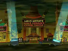 Loew's Qaddafi's Mann's Grauman's Chinese Theater is a theater located in Los Angeles. In 3001, it was used to celebrate the 1000th anniversary of Pauly Shore's Jury Duty II: Trouble on the Hubble. [2ACV19]