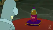 A bottle of the liquor was kept in Hedonismbot's mansion. Bender attempted to steal this bottle, but his plan was foiled by Pickles, who drank its contents.
