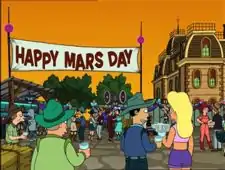 Mars Day celebrates the sale of Mars from the Native Martians to Sir Reginald Wong for a bead. As a part of the celebration, people are allowed to throw garbage wherever they want because, according to Leo Wong, Mars is a "big empty planet."