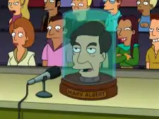 Marv Albert is an American sportcaster, who famously commentated on the basketball game between Globetrotters and the professor's Atomic Supermen, where the slipping time was discovered.