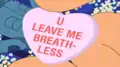 - Candy heart: When the Planet Express Ship went crazy in 3003, Fry searched for a candy heart for Leela while she deactivated the ship. When she ran out of air, he connected his tank to her mask, and started to suffocate. When the air came back on she noticed and started giving him CPR, he survived coughing up this heart.[4ACV03]