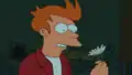 Fry looking at the flower Nibbler gave him to give to Leela.[4ACV10]
