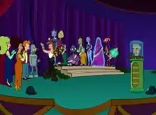 The Miss Universe Pageant 3001 was the only known Miss Universe pageant in Futurama, and was won by Miss Vega 4, Gladys Lennox. She won a bouquet of flowers and the atomic tiara. It was held in 3001 on an unknown date, but it is known that it was held a day before Miss Parallel Universe pageant. An unknown amount of people were competing, though it was known that 10 were in the finals. Bob Barker's head was host.