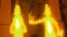 In 3013, the fire monster Flamo, who told Bender that, a billion years prior, he attempted to overthrow the democratically elected aldermen from his district, but was captured and imprisoned, started a fire in the Planet Express headquarters, as part of a plot to become supreme alderman of Earth. [7ACV18] The mystic aldermen then appeared as if by magic in the Planet Express sub-basement, and took Flamo back.