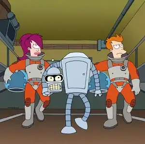 Fry meets a robot named Bender in the Suicide Booth and, after narrowly avoiding death, they grab a drink together. After a couple of beers, Bender decides to leave to re-attempt suicide, but Fry convinces him to stay by saying that he has always wanted a robot for a friend (or at least ever since he was six). Leela is still on his trail, though, after being forced by her boss, Ipji, to pursue Fry and force him to accept the career chip.