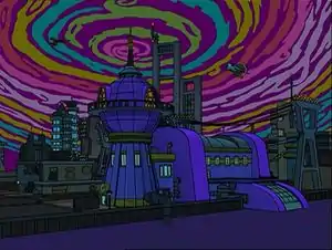 - "The Late Philip J. Fry" (6ACV07) (after the sudden disappearance of Fry, Bender and the Professor, Leela takes over the company and turns it into a massive corporation. Although the layout of the original building seems to remain, several additions are made to it. This building, however, only exists in the first and second universes and is absent from the third and fourth, this pattern is probably repeated until the universe's real end)