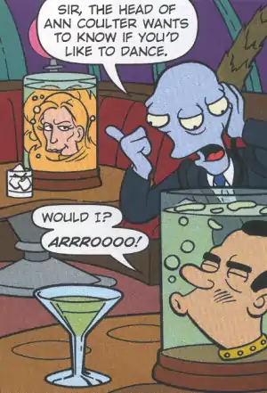 - The green/purple alien (incorrectly coloured on his second appearance) is the first recurring character to exist purely in the comics. He is also the only one of the bodyguards to have spoken.