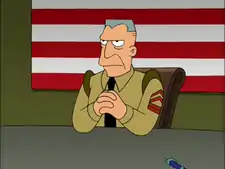 The recruitment officer is an Earth Army officer who, in 3001, recruited Fry and Bender. [2ACV17] In 3009, he attended the ceremony for the implosion of the violet dwarf star. [ItWGY] In 3010, he attended Planet Express's 100th-delivery party. [6ACV12]