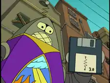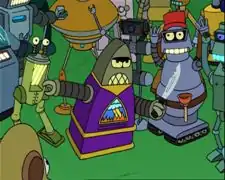 Preacherbot works in the Temple of Robotology as a minister, and also performs baptisms, weddings and funerals (2ACV18), even for those who are not of his religion, or for that matter robots at all. Although he claims to be a strictly religious priest, he has been known to fight (4ACV08) and watch erotic theater (ItWGY). He had a brief acting career, appearing in All My Circuits and Coilette: A Calculon Story (4ACV13). In 3010, Preacherbot hosted Camp Rectifier, where he exposed his closeted robosexuality (6ACV04).