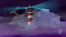 The S.S. Miami Muy Caliente is a ship that navigated through a space storm on the Sargaseous Sea, in 3013. [7ACV21] It almost crashed into the rocks supporting an alien's lighthouse, having only managed to escape because Bender's shiny metal ass was able to reflect through the fog a series of flashes that Fry made with Bender's camera.