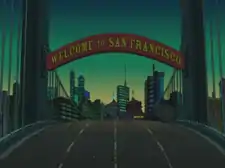 San Francisco is a city that has not changed since the 20th century, except The Golden Gate Bridge has a giant gap in the middle making it a hover bridge so only hovering vehicles can pass it. It was the location of Bend-Aid. [3ACV13]