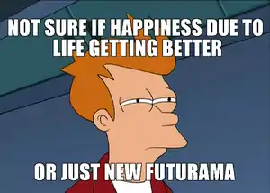 By 1 June, Comedy Central had aired another advertisement consisting of another variation of a meme featuring Fry used in a previous advertisment, and a clip from the episode "A Farewell to Arms".[36]