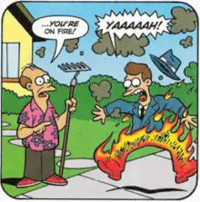 Announcer: Official cause of death, third degree burns... actual cause of death, first degree irony!