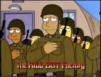 | "Homer Loves Flanders" (1F14) | Kent Brockman gives a report on the U.S. Army, which he describes as a "Kill-Bot Factory". This episode aired exactly 5 years and 11 days before Futurama started. | ![]() |