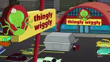 Thingly Wiggly is a supermarket in New New York. In 3013, Leela went there in a new, safer Planet Express ship after Hermes asked her to pick up a few groceries. [7ACV15] One of her shopping bags broke, and a cart dented the ship's door.