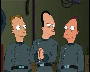 Mom's three sons, Walt, Larry and Igner, are remarkable by their devotion to their own mother and her business methods. They are the primary henchmen of Mom's business, and they are often sent out on dubious missions. Despite their somewhat comical characteristics, they seem to be quite successful in their tasks, such as stealing Fry's money, even though their scheme was dubious to begin with. Of course, this may also be attributed to Fry's own stupidity.