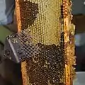 A honey extractor is a mechanical device used in the honey extraction. A honey extractor extracts the honey from the honey comb without destroying the comb. Extractors work by centrifugal force. A drum or container holds a frame basket which spins, flinging the honey out. With this method the wax comb stays intact within the frame and can be reused by the bees.