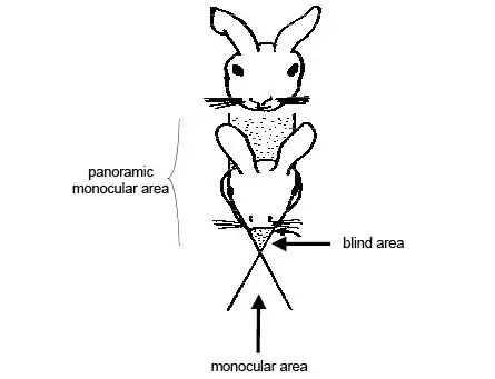 Diagram 15.8 - Panoramic monocular vision in prey animals like the rabbit
