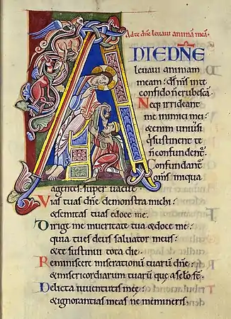 Inscription of the book of Lindisfarne, an example of Anglo-Saxon art.