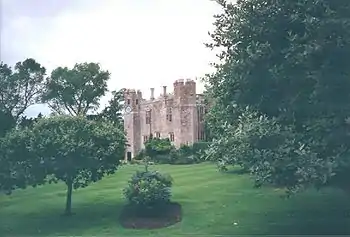 Boarstall Tower is a 14th-century moated gatehouse located in Boarstall, Buckinghamshire and now, with its surrounding gardens, a National Trust property.