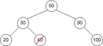 1. The root node is 50, which is greater than 40, so you go to 50's left child.