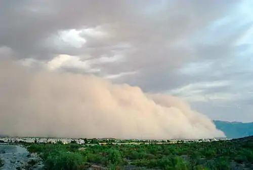 - Desert sandstorms that form in the downdrafts of a thunderstorm.