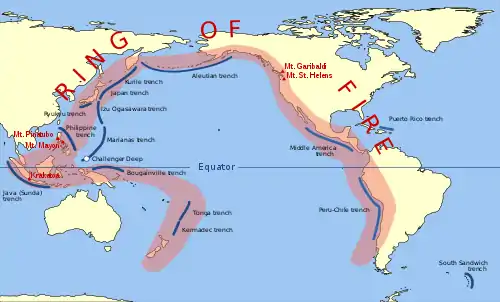- Explain how the Pacific Ring of Fire got its name.